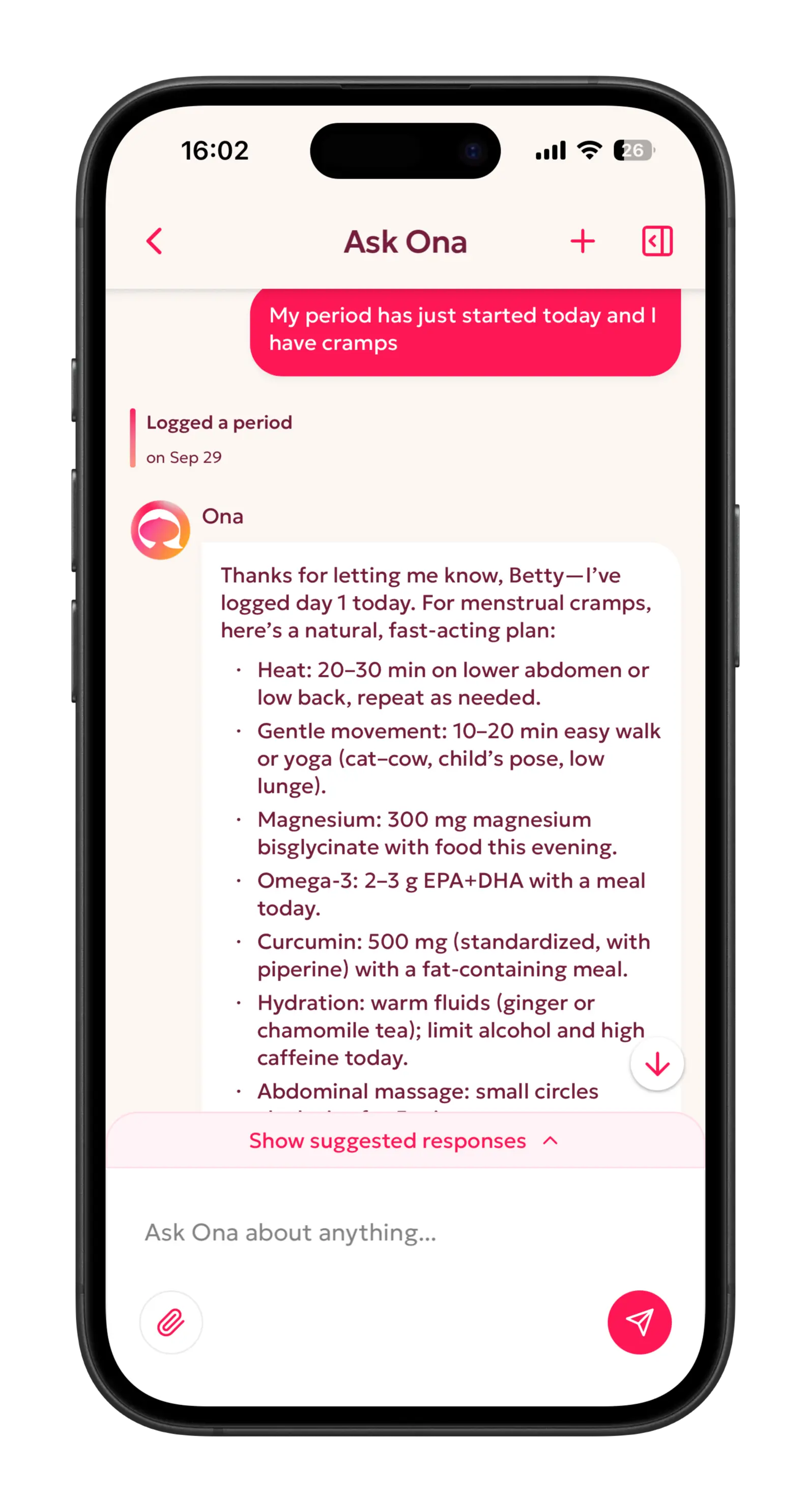 Ona helps you understand your unique patterns and provides personalized insights that doctors often miss.